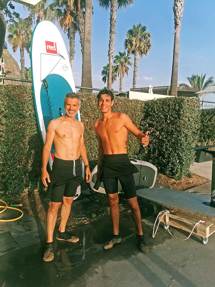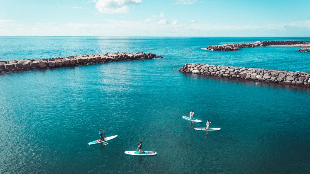 We’re home based in Calheta Beach, with an artificial bay that protects you from the waves.